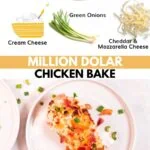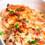 This Million Dollar Chicken casserole is the definition of comfort food. Made with just a few simple ingredients, it comes together super quickly. The chicken breast is topped with a creamy mixture of cheese, and crispy bacon, then roasted until juicy and creamy.