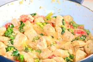 One-pan cheesy garlic chicken bites, combined with nutritious broccoli and spinach are cooked in under 20 minutes. This quick and flavorful chicken recipe not only satisfies your taste buds but also makes an excellent keto-friendly choice. Serve it alongside zoodles or pasta for a complete and satisfying meal!