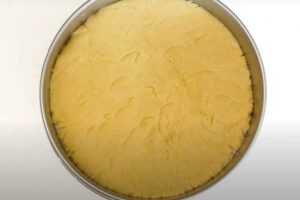 Press the crust mixture into a 9″ springform pan and press firmly into the bottom. Bake for 10-12 minutes.