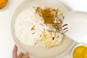 Add in the pumpkin puree and continue mixing.