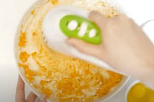 Reduce the speed of your mixer and add the eggs.