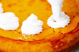 This classic keto pumpkin cheesecake is easy to make and has the perfect amount of pumpkin flavor. Prepare a creamy and smooth keto Thanksgiving dessert that everyone will love.